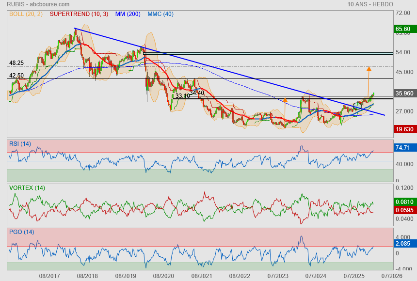 on pourrait assister à une libération et propulser le cours sur la zone des 42.50€