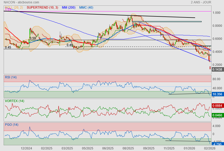 (Boursier.com) — Par communiqué de presse en date du 25 février 2026, Nacon avait annoncé procéder à une déclaration de cessation de paiements auprès du Tribunal de commerce de Lille Métropole, et solliciter l'ouverture d'une procédure de redressement judiciaire.