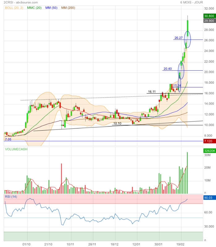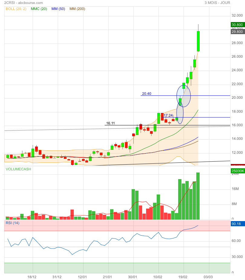 Eh bien, à défaut d'étoiles, cette dernière ascension explosive - parlant de 2CRSI, depuis mi-février -, me donne la même sensation.