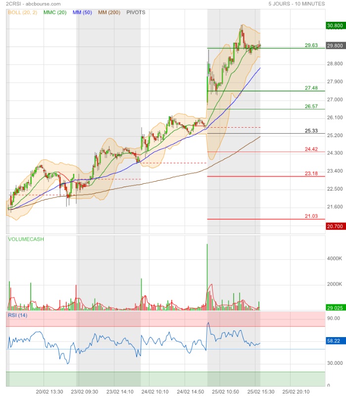 2) Attendre les résultats de Nvidia ce soir . La réaction, post publication de ces résultats, des marchés US donnera la nouvelle tendance qui impactera inévitablement 2CRSI.