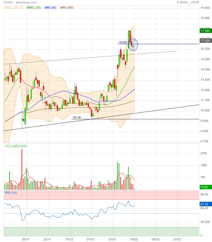 Achat : Possible sur les retracements vers 16,20 € ou 14,70-15,00 €.