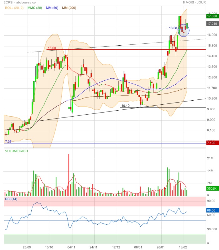 Cours de clôture : 17,24 € (en forte hausse).