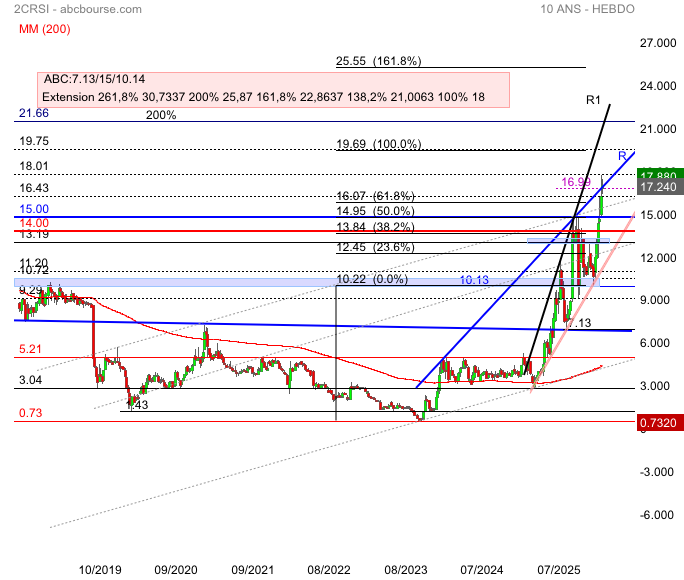 Objectif : Premier objectif à 19,93 €, puis potentiellement 26,80 € à moyen terme.