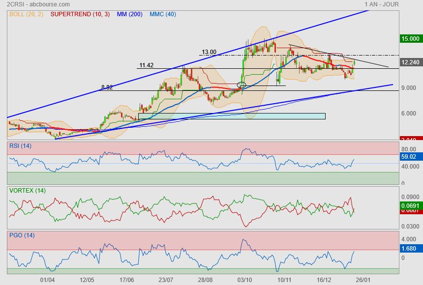 A voir dans les prochains jours si on se rapproche des 12 EUR ou si on revient à ton support 10,76
