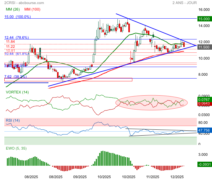 Échec sur 12.44€, cassure de 11.84