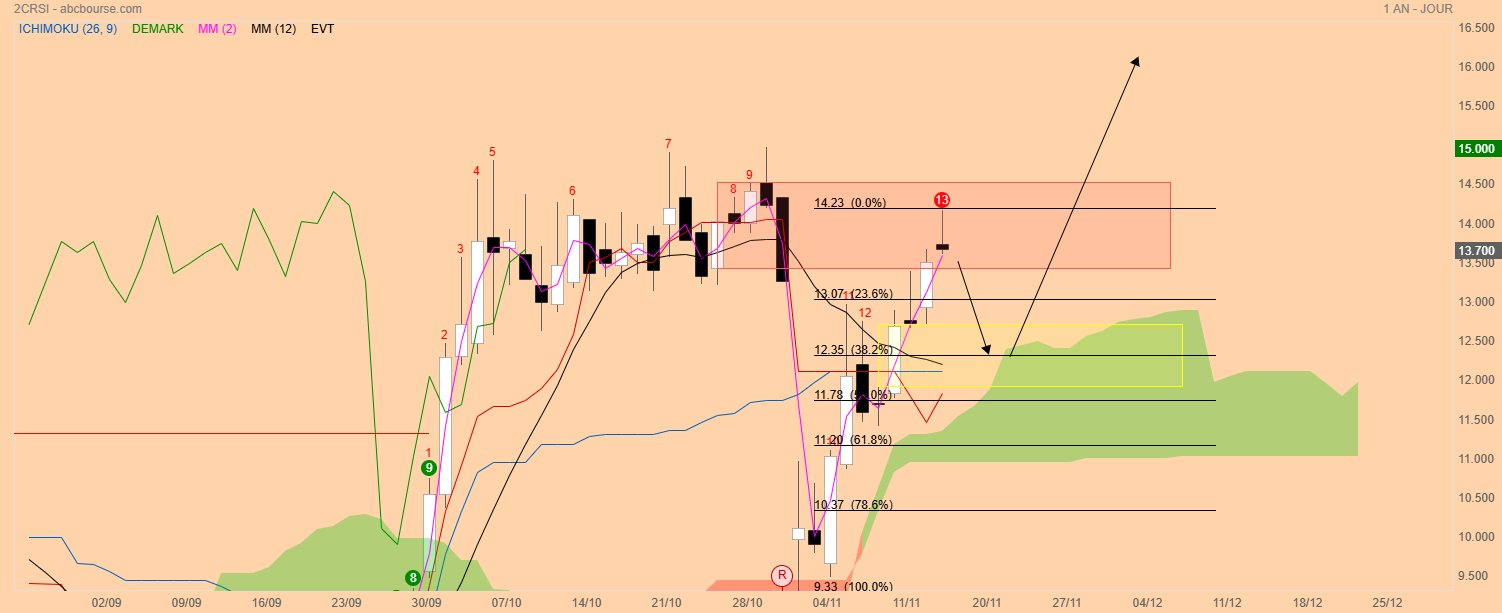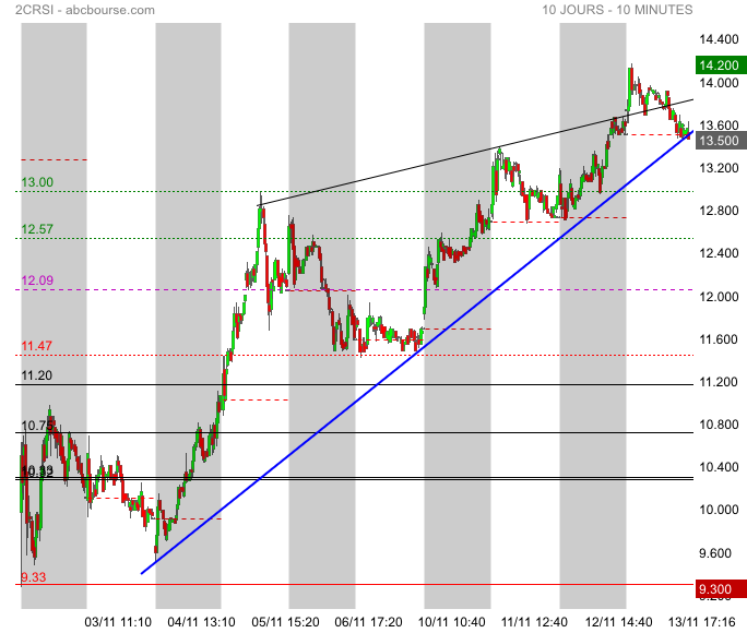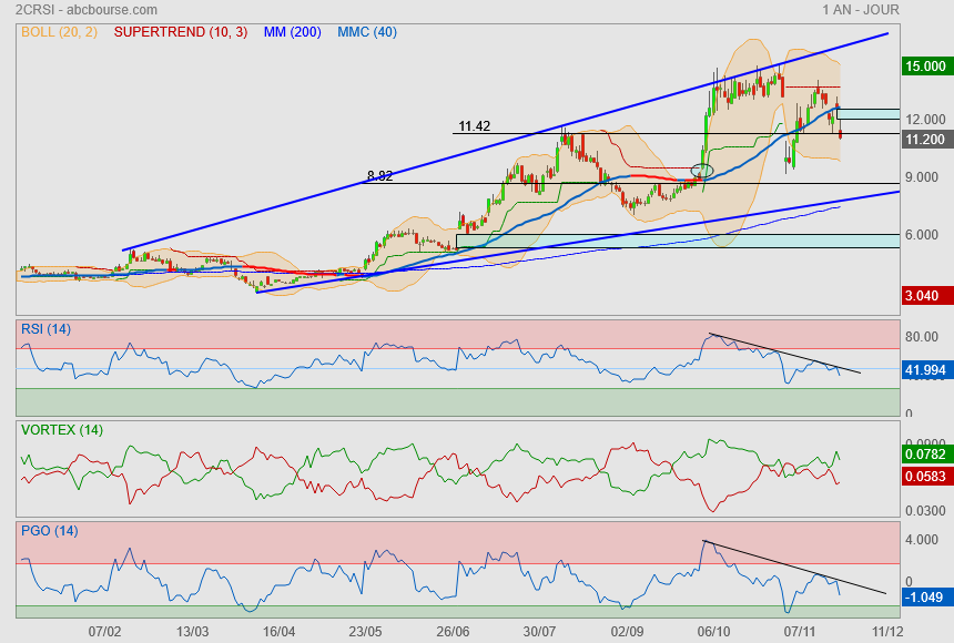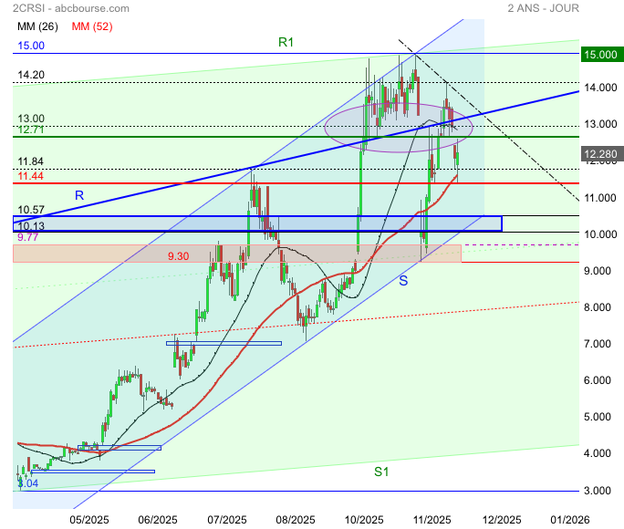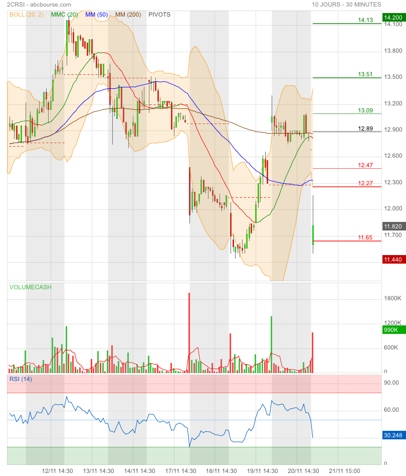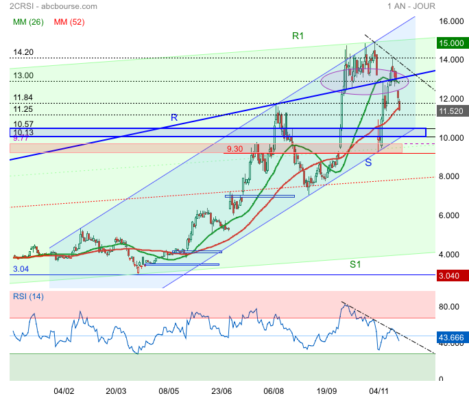 2CRSI ne résiste pas à la consolidation de la bourse en baisse à 11.52€