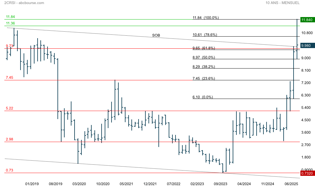 Toute perspective de maintien à leur niveau actuel ou pire de hausse des taux directeurs fera chuter le boss. Le CAC ne sera pas épargné et 2Crsi qui a superforme ces derniers mois pourrait en faire les frais.