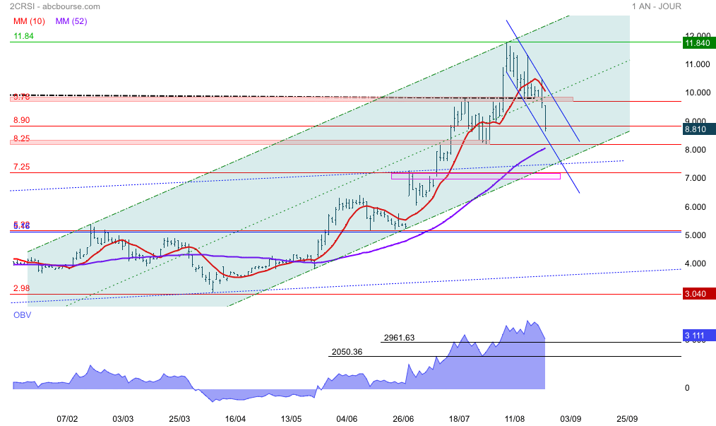 Je pense à un rebond possible sur ce niveau de 8.05 - 8.35€
