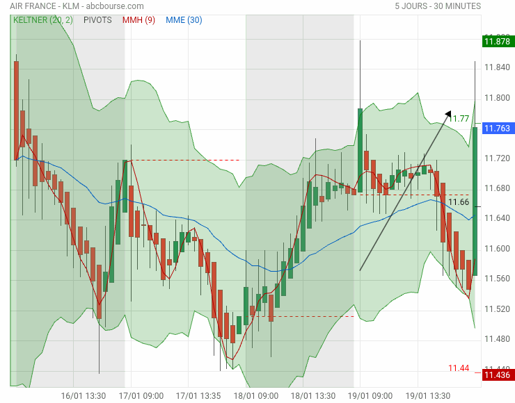 Bien essayé mais il en manque… il faudra casser franchement les 10,40€ pour envisager d’essayer de fermer le gap. Les volumes du jour sont normaux et ne montrent pas d’engouement particulier pour le titre. Toujours dans un petit range horizontal 🤔