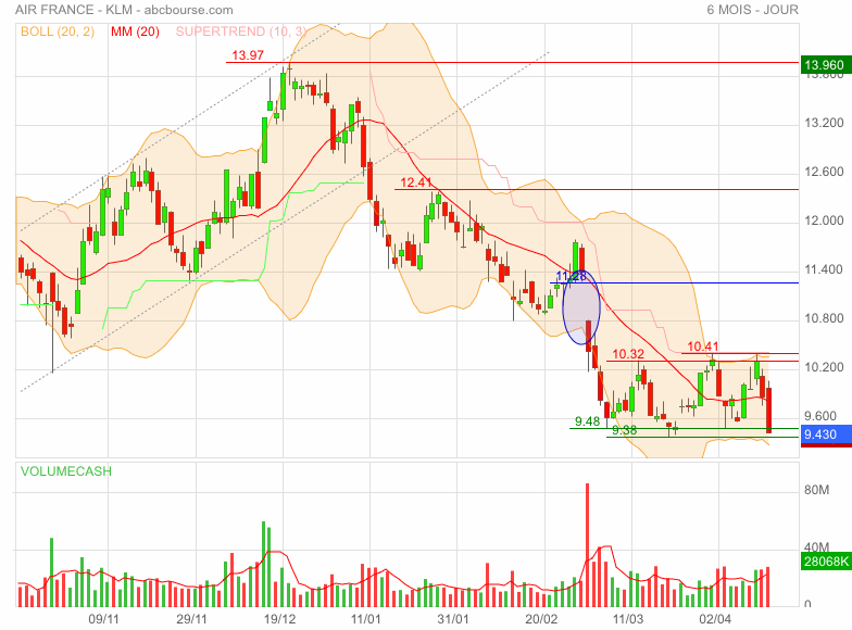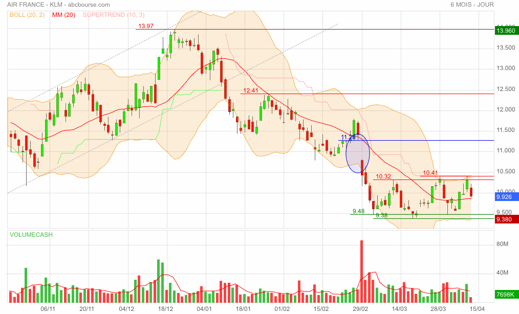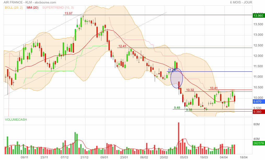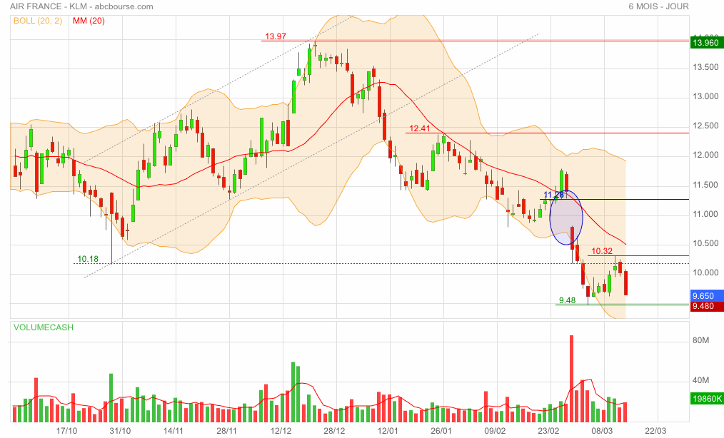 Le refus de clôturer au-dessus de 10,18€, ancien support devenu résistance, ouvre la voie au re-test des 9,48€.