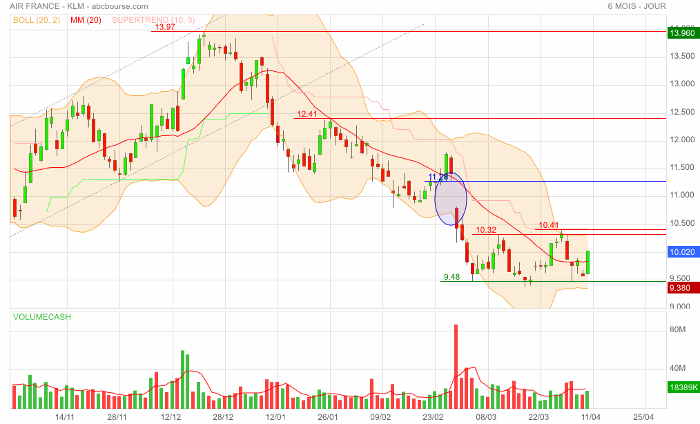 Il faudrait casser 10,32 € pour invalider la tendance baissière actuelle 😊
