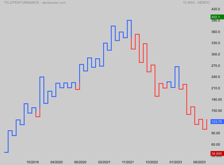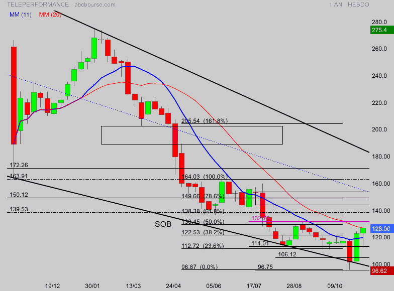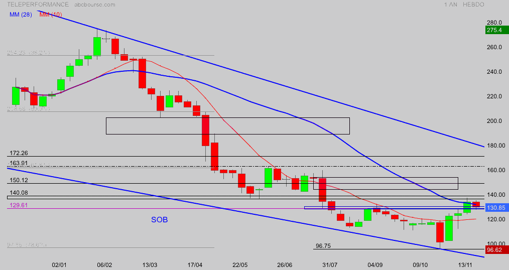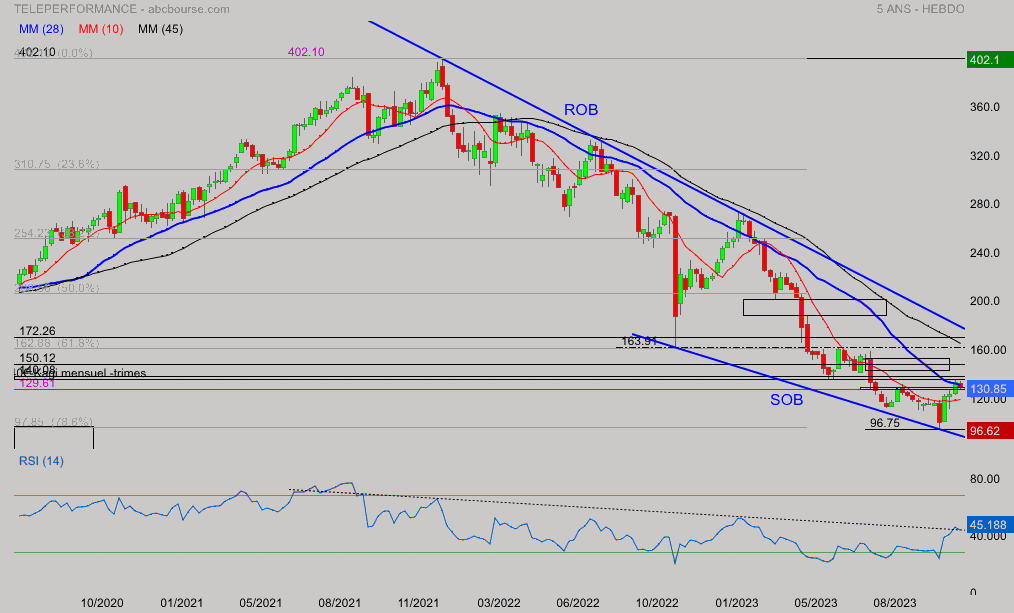 Teleperformance clôture ce soir sur les 128€ et il es à 2 doigts de valider un retournement hebdomadaire