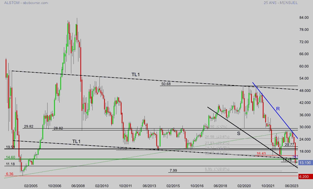 Alstom fini cette semaine en forte baisse 13.10 et reste sous pression baissière