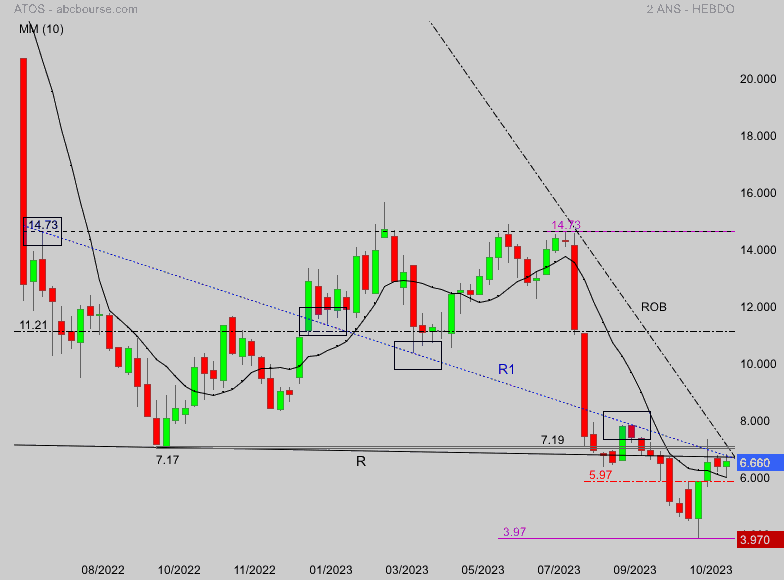 Atos ne profite pas totalement du rebond sur la place parisienne , le prix reste bloquer sous une zone