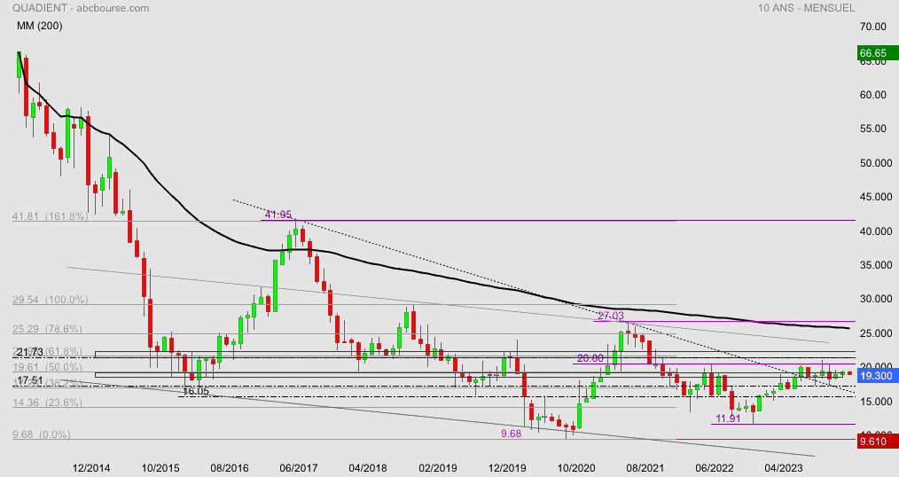 La valeur travaille depuis 8 mois fibonnacci 50% 19.61 sans parvenir à le franchir durablement