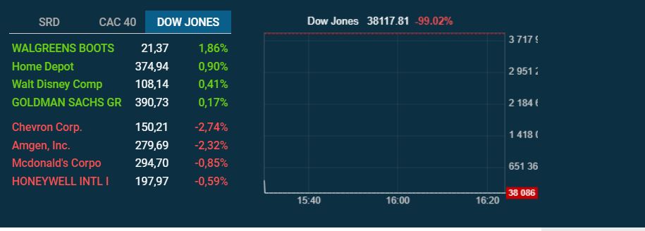 Cours | Graphes | News | Analyses et conseils | Composition Dow Jones | Historiques | Forum |