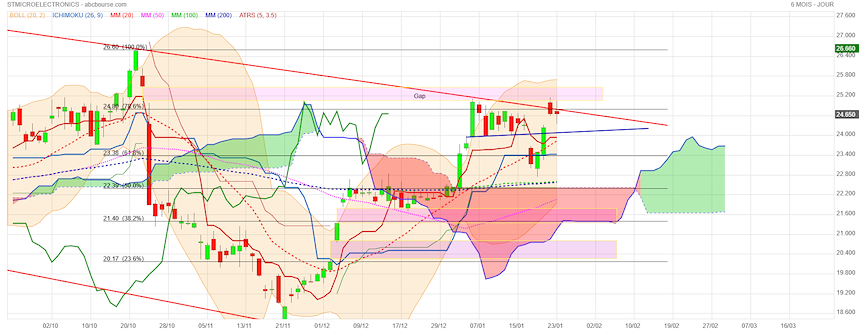 o Support 2 : 23,95 € (la Tenkan). C'est le niveau critique. Passer en dessous invaliderait le signal de reprise de janvier.