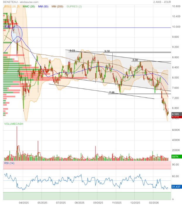 Commandes. Au vu de la reprise des commandes, la société anticipe un rebond de son chiffre d'affaires en 2026. La solide situation financière a permis d'accélérer le lancement de nouveaux modèles qui bénéficient visiblement d'un accueil favorable. Même si la conjoncture reste incertaine, les amateurs de navigation semblent à nouveau avoir envie de se faire plaisir. Cette situation devrait favoriser la reconstitution des marges de Beneteau. Le titre reste pourtant plombé par la dégradation des différents indicateurs financiers constatée sur l'année écoulée.