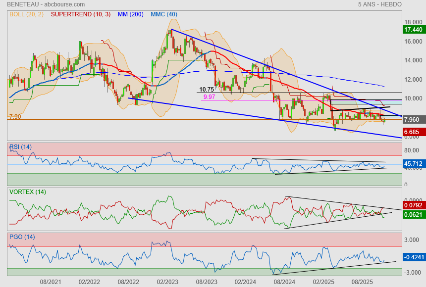 2025 est incontestablement une année de transition (effets de stocks ; marchés qui restent compliqués) mais les nouveautés de 2026 couplées à la normalisation des effets de stocks devraient contribuer à renouer avec la croissance pour 2026, affirme de son côté Oddo BHF. A court terme et dans l'attente d'avoir plus de visibilité sur l'horizon de la reprise, le courtier reste 'neutre' avec un objectif ajusté de 9,6 à 8,5 euros.