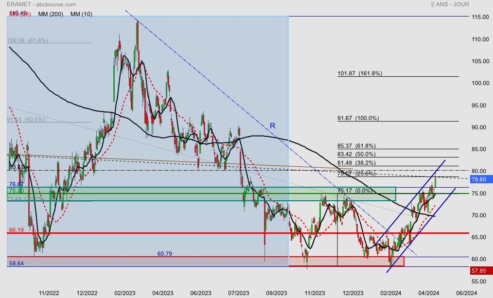 Eramet est bien orienté ce matin 78.60 les perspectives sont bien accueillis..