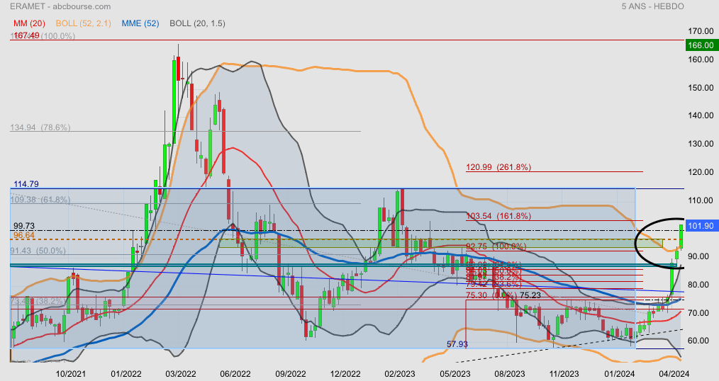 Depuis le début de l’année, Eramet a connu une hausse de plus de 42%, ce qui semble avoir ravivé la confiance des investisseurs dans son potentiel de croissance. Le 26 avril, le titre a gagné plus de 11% en une seule séance après la publication de ses résultats du premier trimestre 2024.