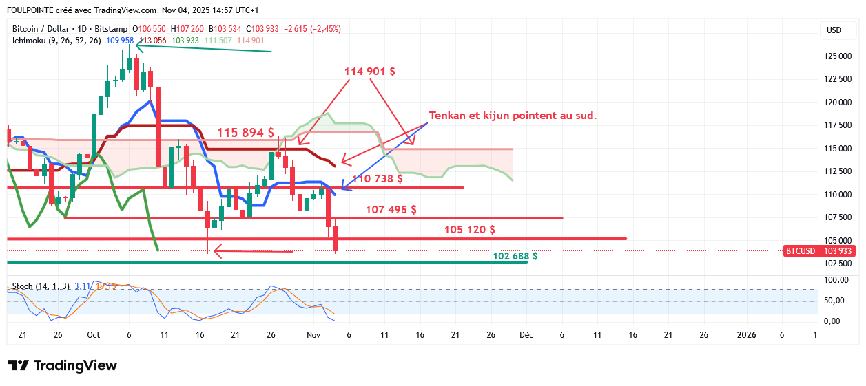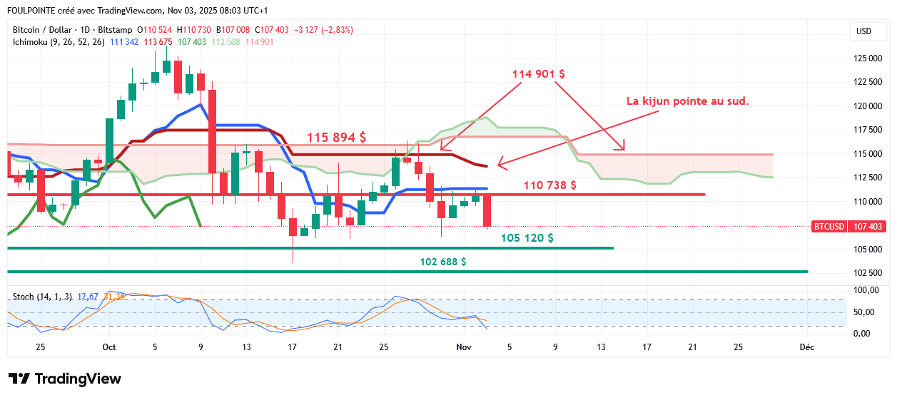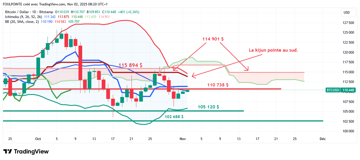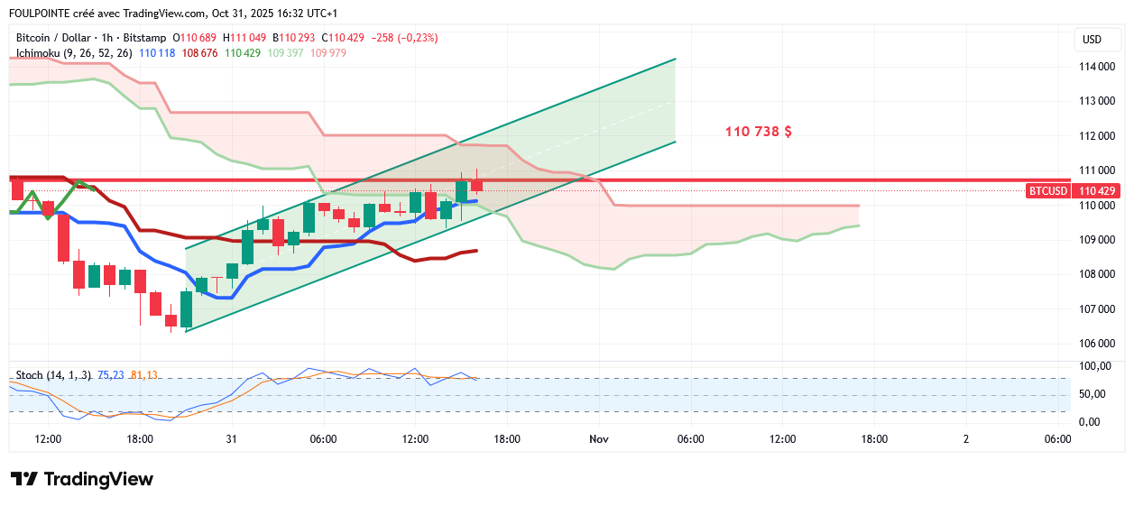 Cette déclaration tombait alors que le cours de Bitcoin venait de passer sous les 110 000 $ et s’échangeait à 109 535 $ ce vendredi 31 octobre en tout début de séance américaine.