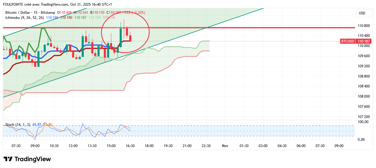 En ut 15 minutes on voit bien les baissiers qui canardent toute tentative de passer les 110 738 $ par les haussiers.