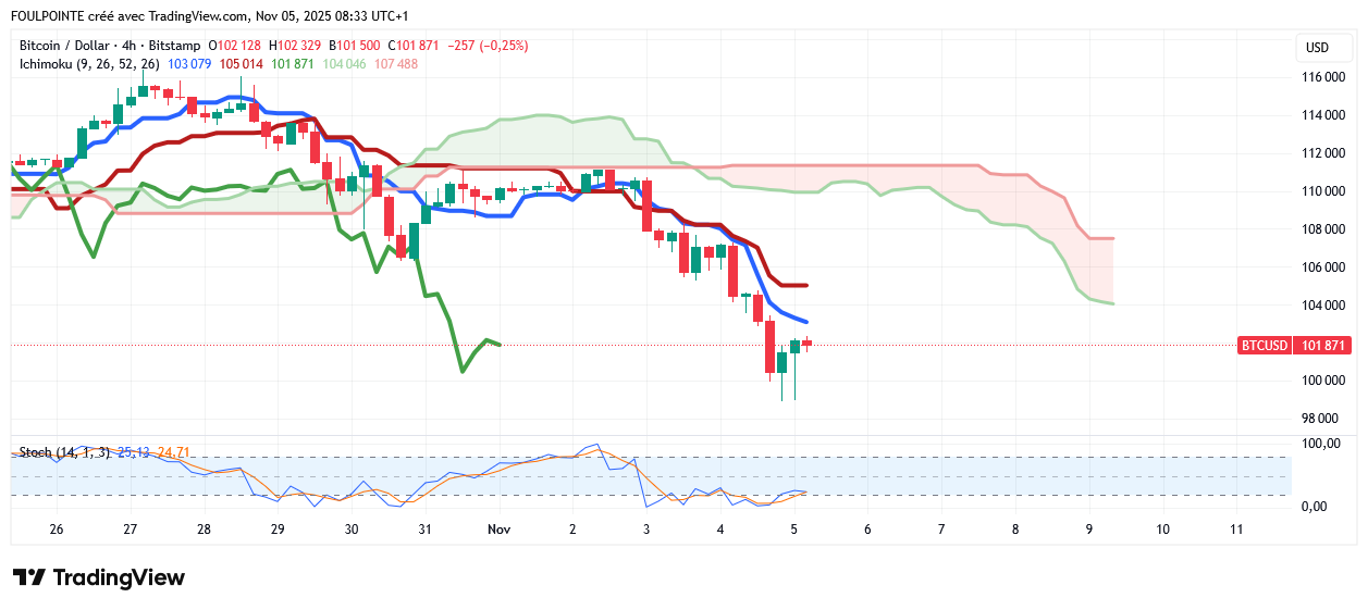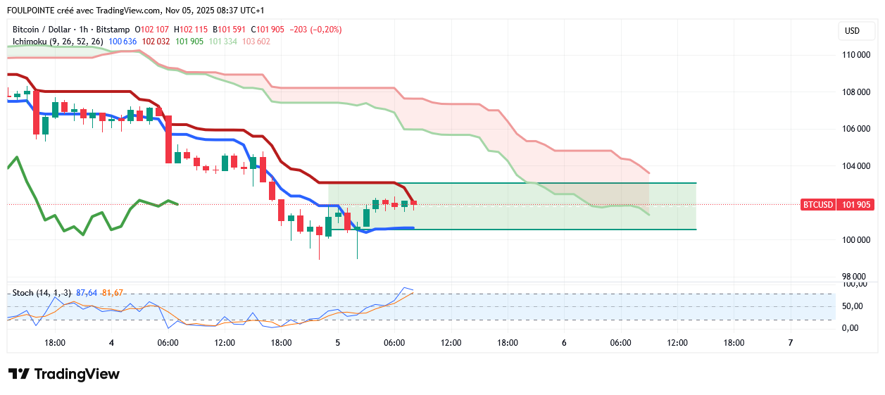 Le BTCUSD devrait maintenant se stabiliser aux alentours des 102 000 $.