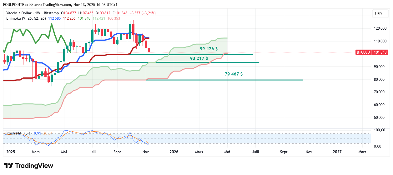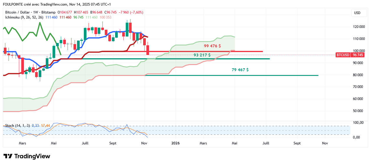 Les 99 476 $ ont lâché. La tenkan et la kijun hebdomadaires en katana pendant encore 3 jours ne vont pas arranger les choses.