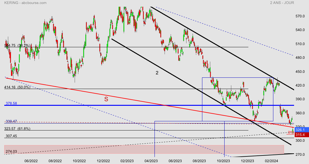 Gap sur l’oblique S joignant les 2 anciens PB ´ nouveau + bas annuel 315 , tentative de retournement test de (S :331)échec….