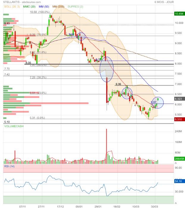 Souhaitez-vous que je surveille l'ouverture de demain pour confirmer si le titre parvient à s'attaquer à la résistance des 6,80 € ?