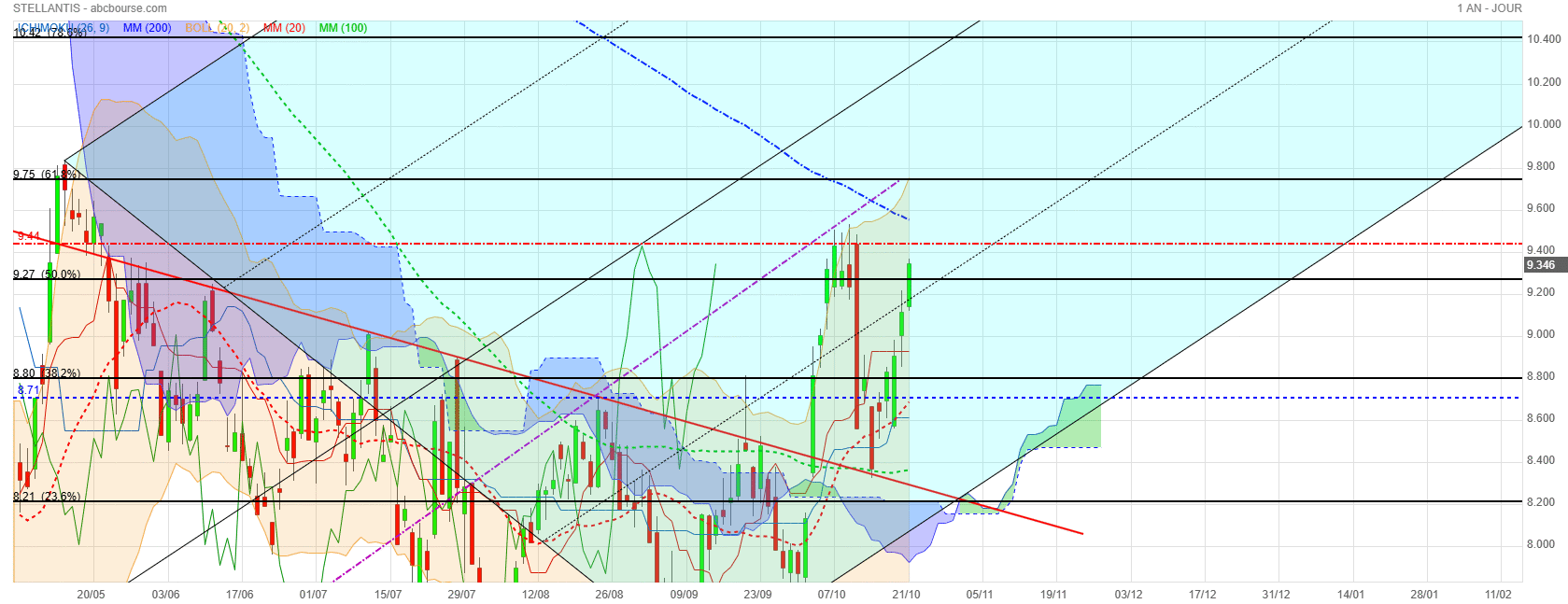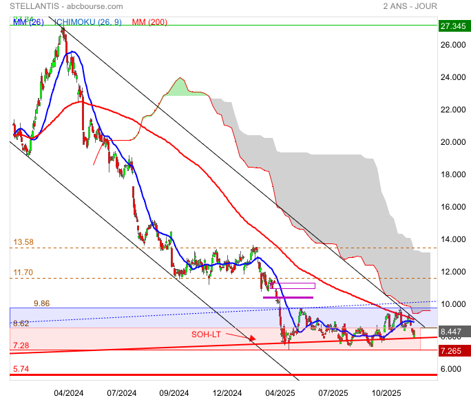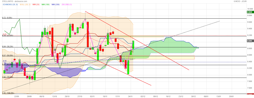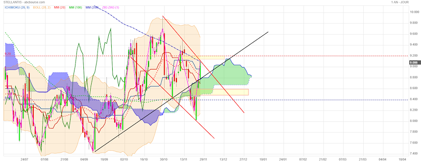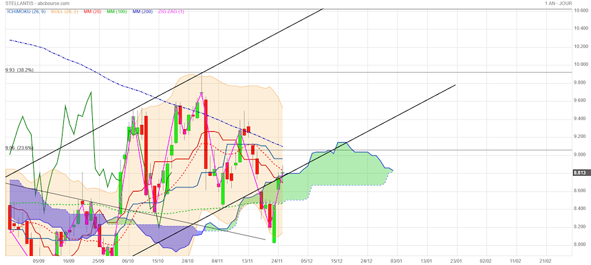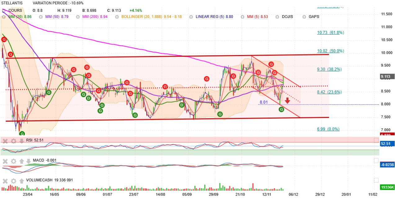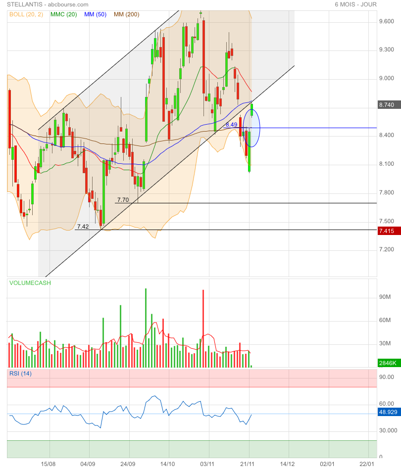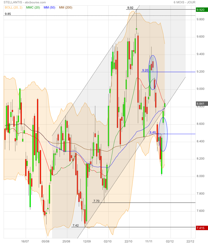 On peut espérer celle du gap 8,74 €. Puis la réintégration du canal haussier.