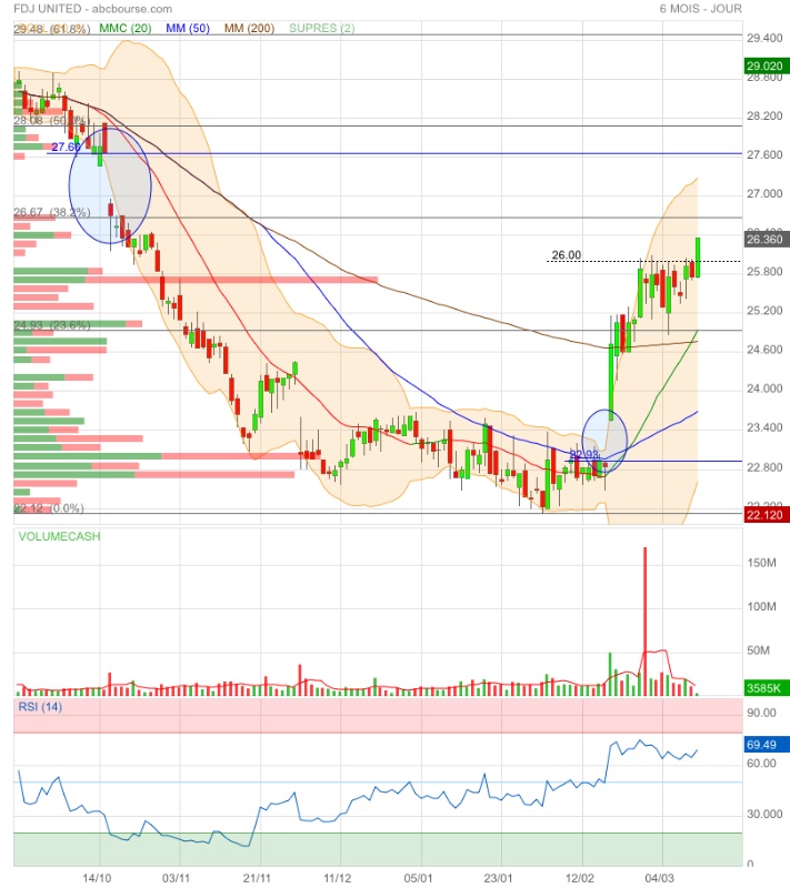 C’est bien parti pour un franchissement réussi de cette zone 26€. À vérifier tout de même après la clôture et notamment les volumes. Et donc, cible 27,66€ serait validée 👍