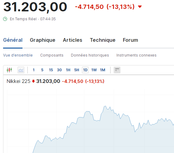 C'était quand même la plus grosse baisse du Nikkei depuis 1987 et le la plus grosse baisse de toute l'histoire en termes de points...