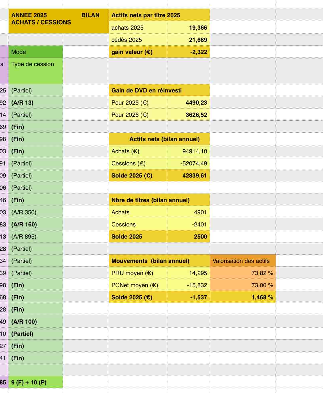Je vous joins la partie bilan de titre 2025 du PEA 2. Les premières opérations de l'année avaient essentiellement travaillé l'ajout de dividende, la seconde partie des opérations actuellement travaille sur le fond, à savoir la croissance des actifs nets qui fait un bond déjà encore cette année après 3 années de forte croissance entre 2022 et 2024.
