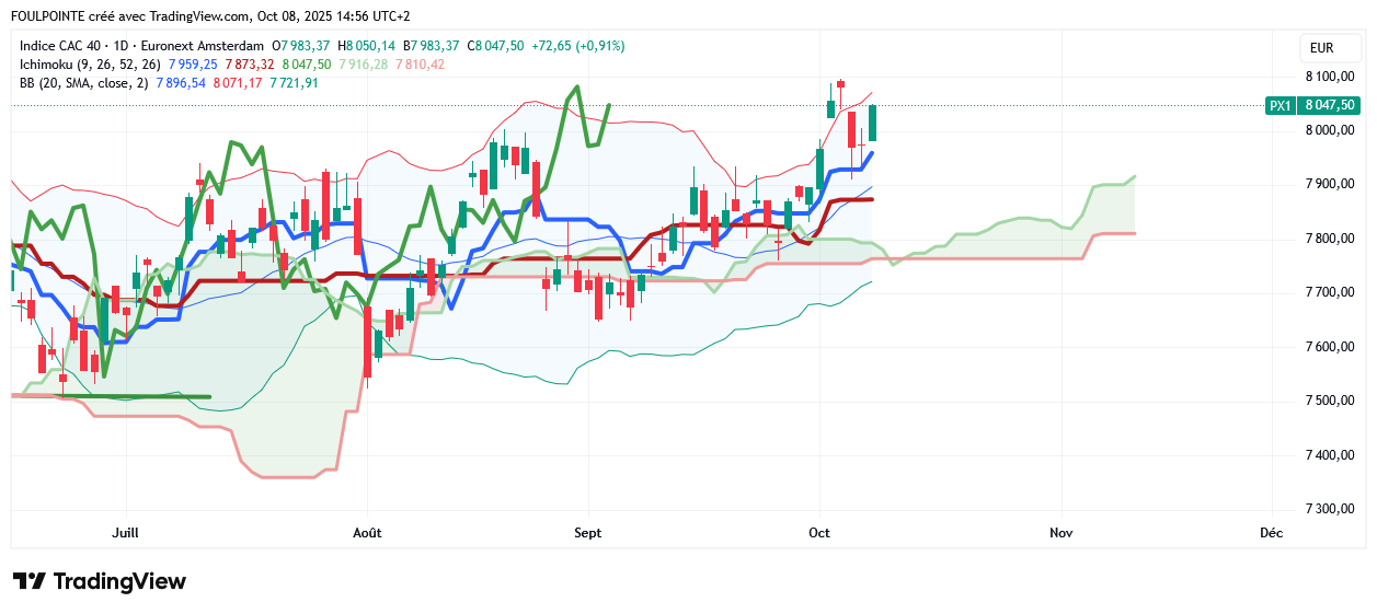 • CAC 40 : +8,05% ( -2,55% du plus haut de l'année 2025 )