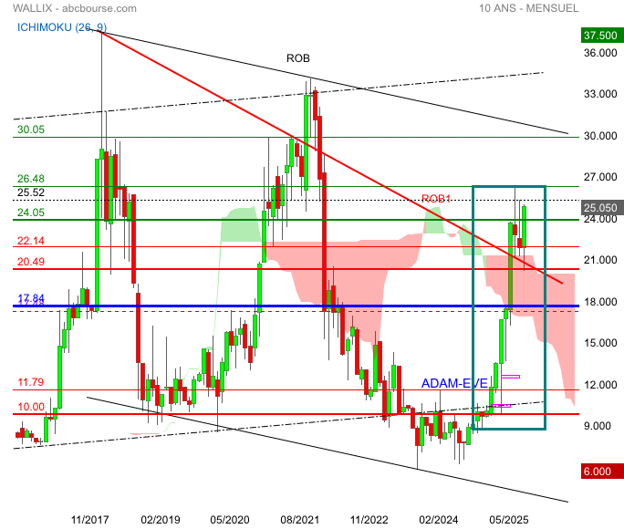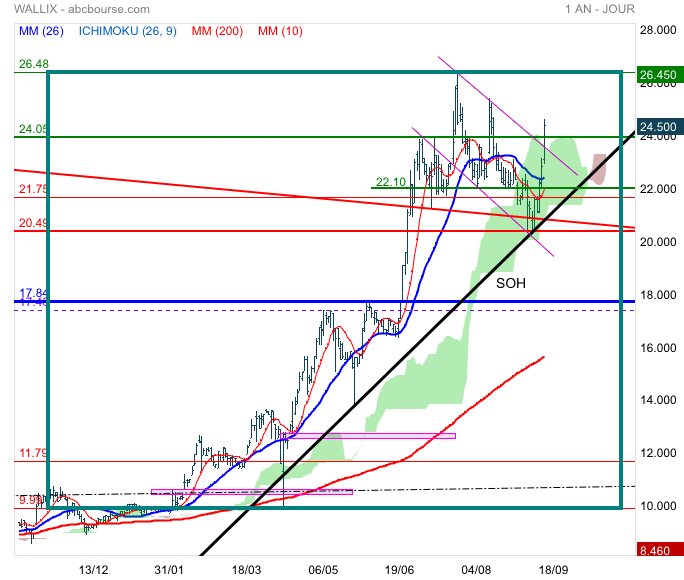 Wallix renko hebdomadaire prochaine résistance majeur 24.45€