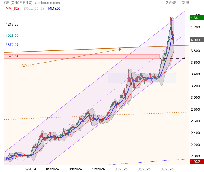 À surveiller à la baisse: SOH-LT (3872)+BBB20+mm52 (3805-3840)