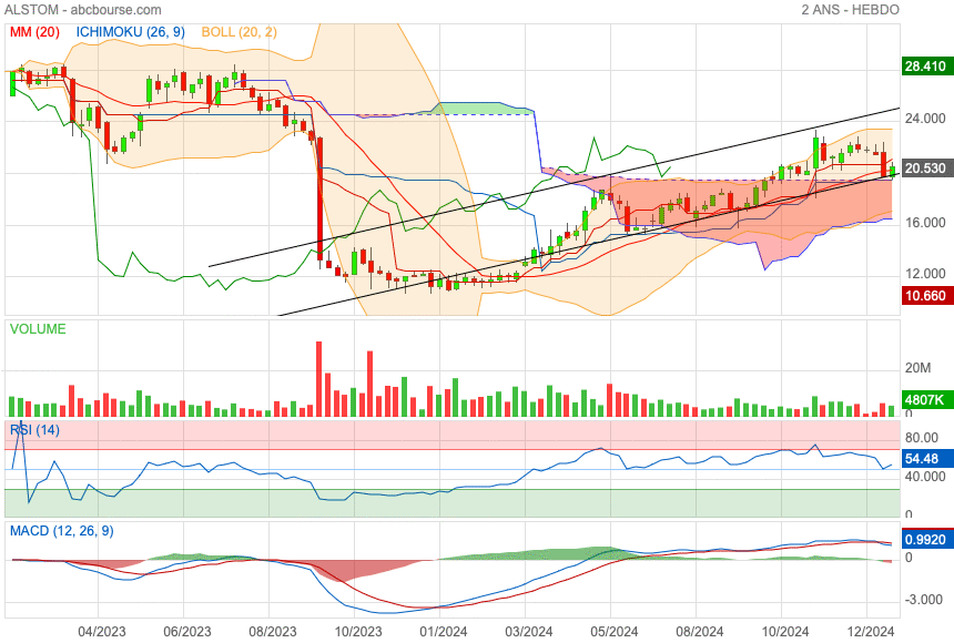 l'action semble située en bas du canal ascendant, sur le support, et pourrait se diriger vers les 24.8 euros