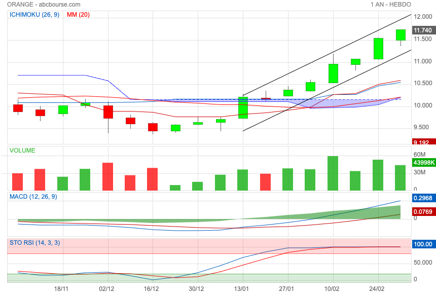 Orange progresse depuis le début de l'année de quasiment 22% et de par son caractère de valeur défensive permet d'assurer un dividende intéressant .