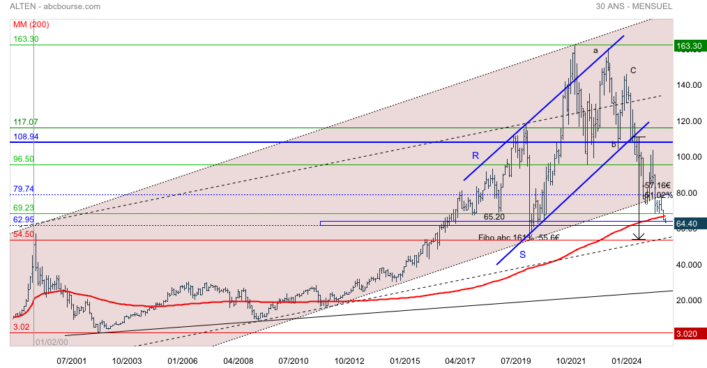 Alten est en hausse ce matin à 81.15€ évitant hier la sortie du tunnel haussier long terme