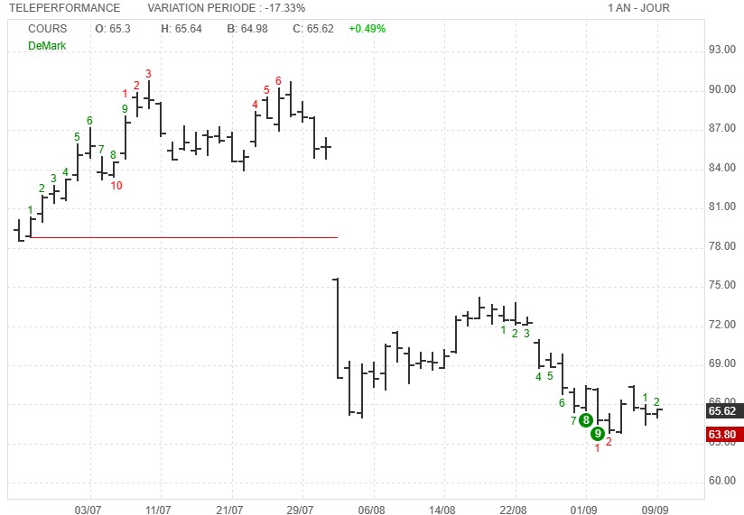 je fais beaucoup d'intraday car ça permet de voir les décomptes séquentiels en "accéléré" et je pense observer qu'il serait très utile de marquer, de caractériser les TD Price Flip qui sont le préalable obligatoire à tout décompte car en leur absence , il est plus difficile de suivre ou d'anticiper les décomptes des setups...