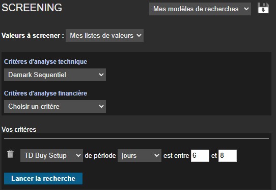 Encore plus fort la fonction demark sequentiel est présente dans le screenner et je vais la tester ....