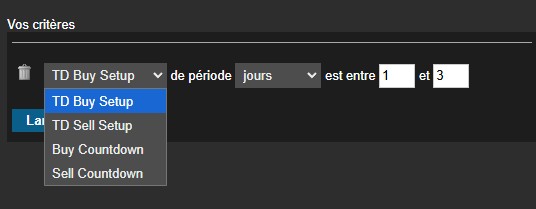 - le screener permet de rechercher des configurations de Setup ou de Countdown. Le screener n'est pour l'instant que sur Chart 365, si tout fonctionne bien, ce que vous ne manquerez pas de nous confirmer, on le mettra sur le screener en accès libre