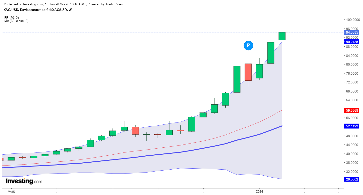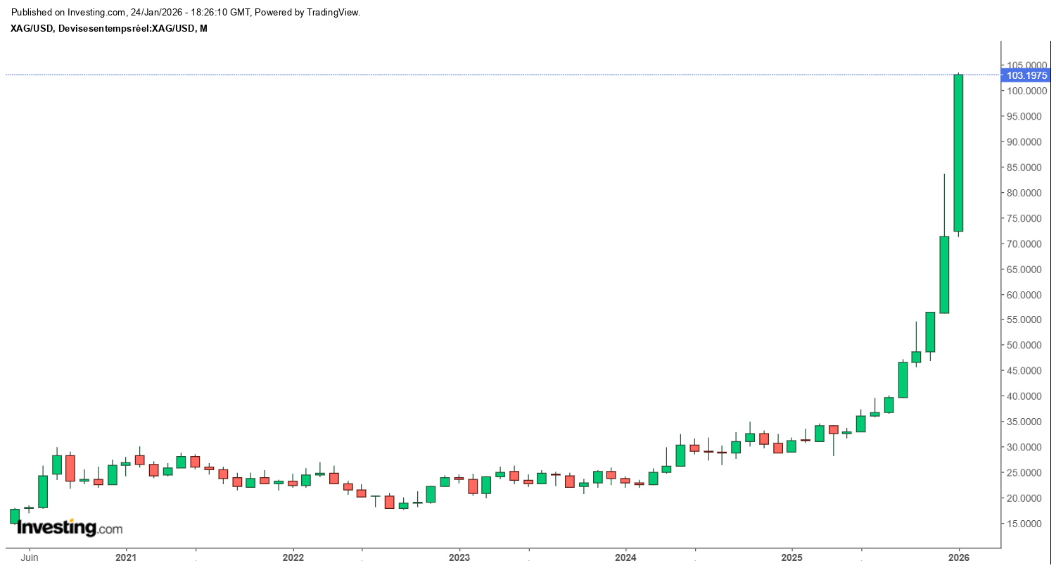 quand même un bon nombre de p'tits gars sérieux pour anticiper une culbute pour l'argent en 2026, moi je prie qu'ils aient raison , quelle dinguerie!