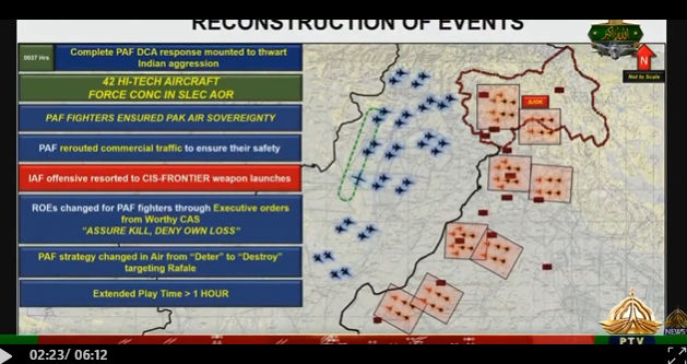 Petit extrait ci-dessous de la vidéo pakistanaise qui montre l'organisation du champ de bataille aérien et les forces en présence.