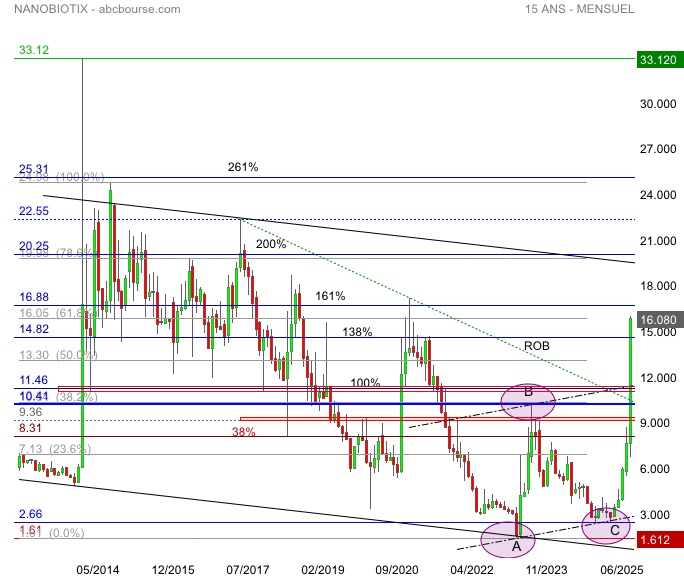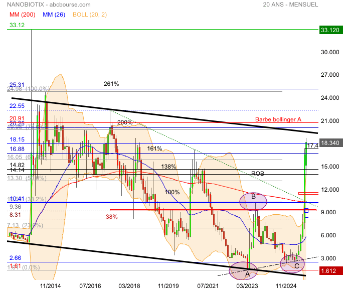 La revalorisation se poursuit , nous avons franchi ratio fibonnacci ( figure ABC ):14.82€ 138% on test actuellement retracement fibo 61% 16.05€+ 16.88€ extension 161% seuil important