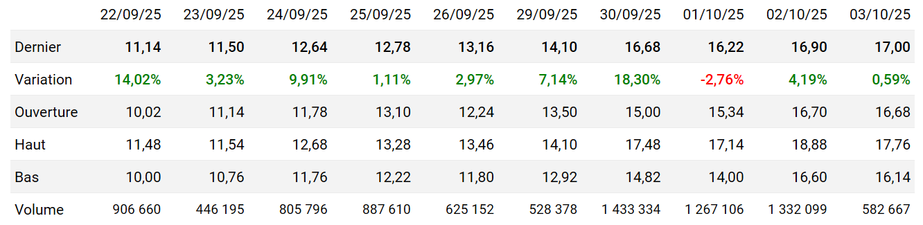 Cours | Graphes | News | Analyses et conseils | Société | Historiques | Vie du titre | Secteur | Forum |