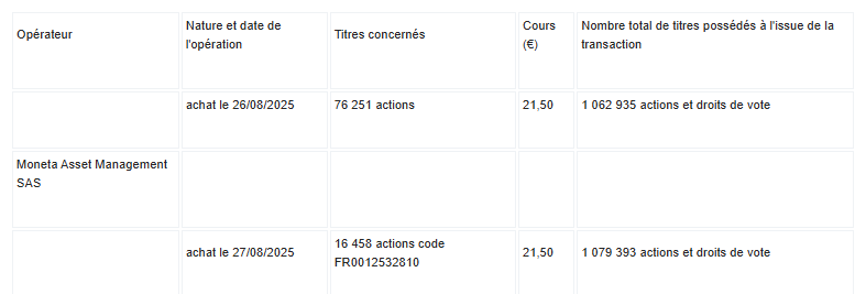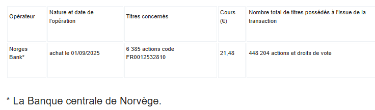 Avec cet achat, il détient maintenant 16 067 923 actions et droits de vote (source AMF 225C1728 )