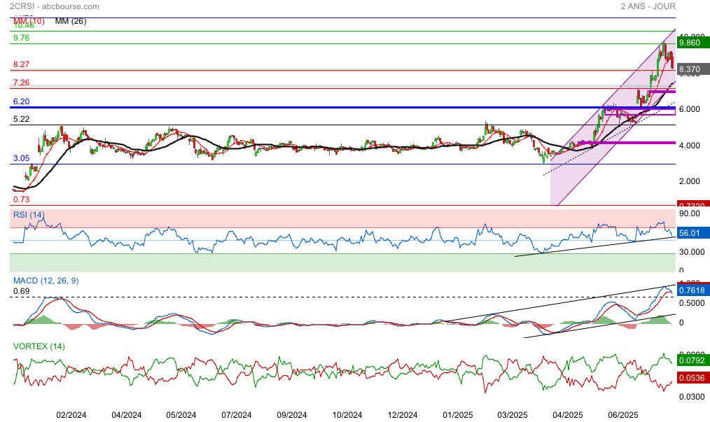 En effet 2crsi se valorise 0.6 fois le CA 2025 avec un PER estimé à 7 pour 2026 ce qui est extrêmement faible pour une société IA en hyper croissance.